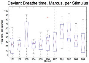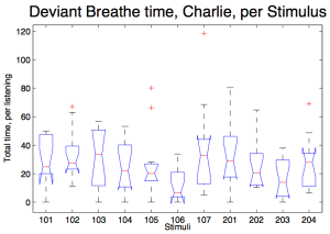 Hypothesis – The amount of breaths disrupted per listening depends on the music heard. Tested by measure the duration of time outside of normal quiet breathing per listening.